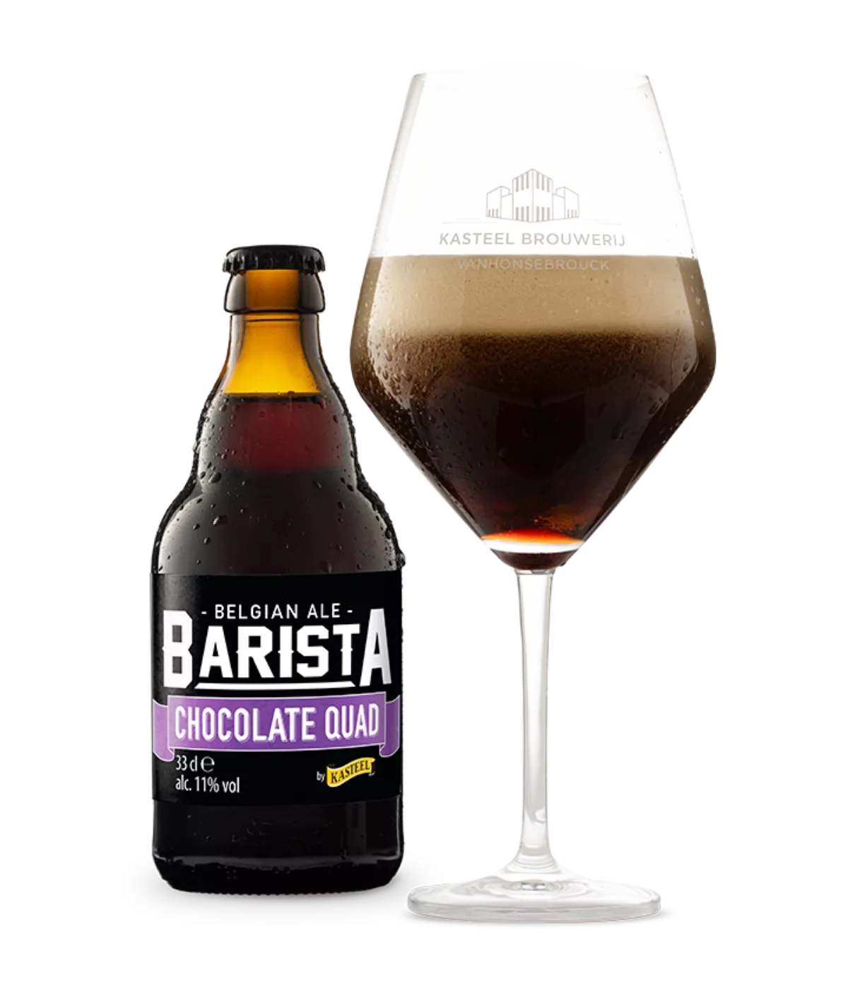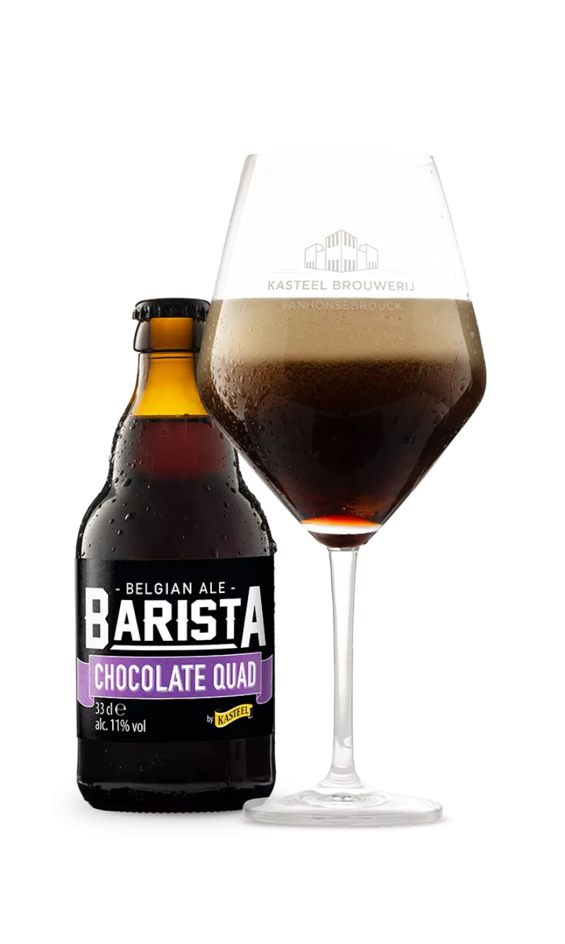 Barista Chocolate Quad Barista Chocolate Quad is een type quadrupel die qua uitzicht en smaak veel meegeeft van een porter of stout. De aroma’s van chocolade en koffie zijn sterk aanwezig, zowel in geur als smaak. De toetsen van karamel, toffee en chocolade vormen een zacht geheel met de sublieme hopbitter. Tot slot verwent het bier met een droge, verwarmende afdronk die smaakt naar meer.