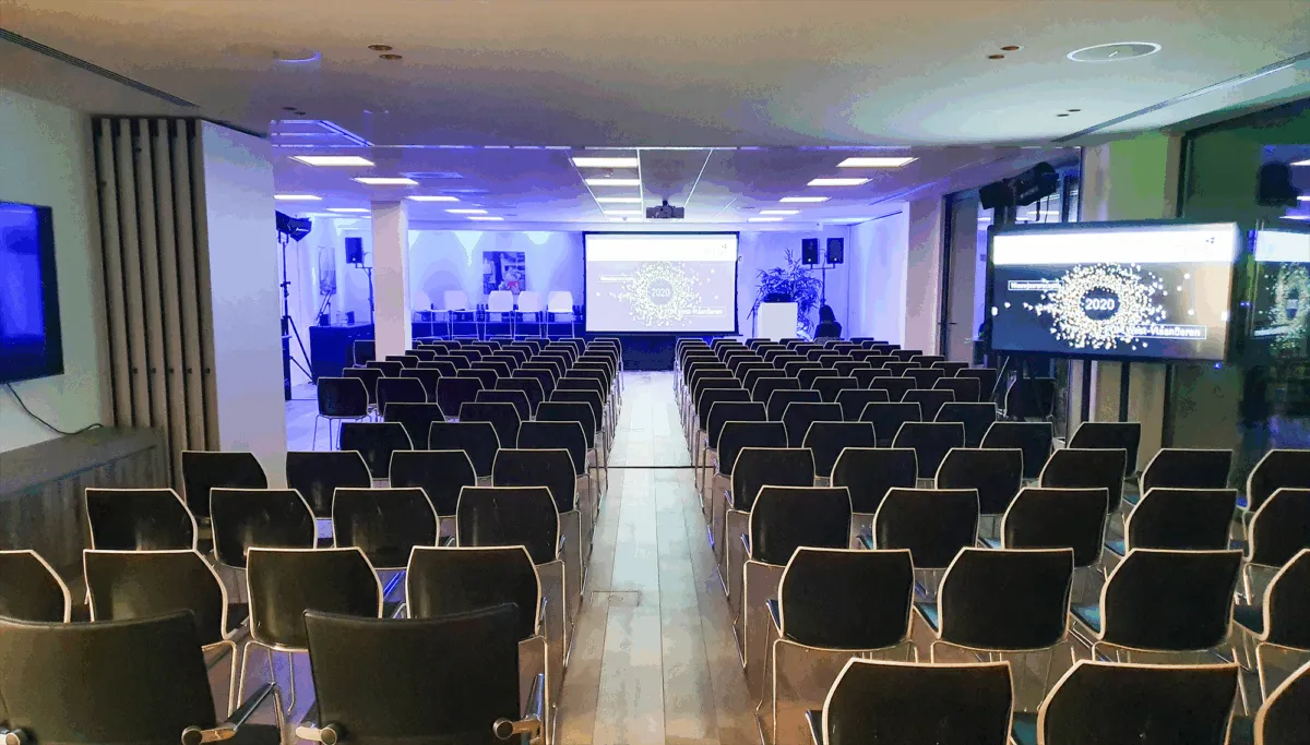 Make use of our 6 m² stage, or give a presentation with notes at hand thanks to our specially-designed lectern.