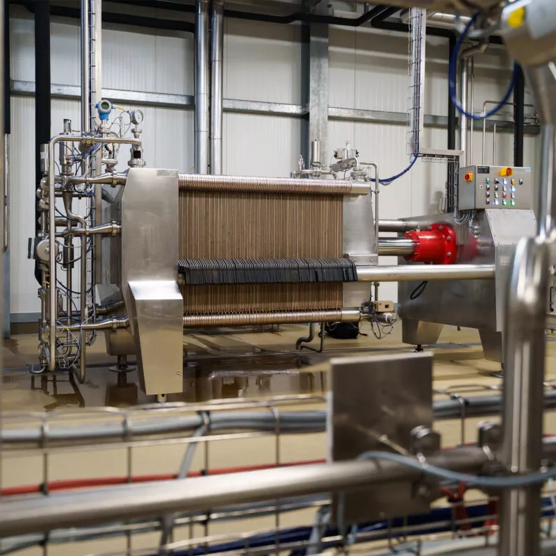 la filtration Pour la seconde fois du processus de brassage, il faut filtrer. Cette seconde filtration permet d’éliminer la levure résiduelle et les impuretés de la bière. Comme les drêches, la levure résiduelle est conservée dans un silo jusqu’à ce qu’elle soit récupérée par un distributeur agréé.