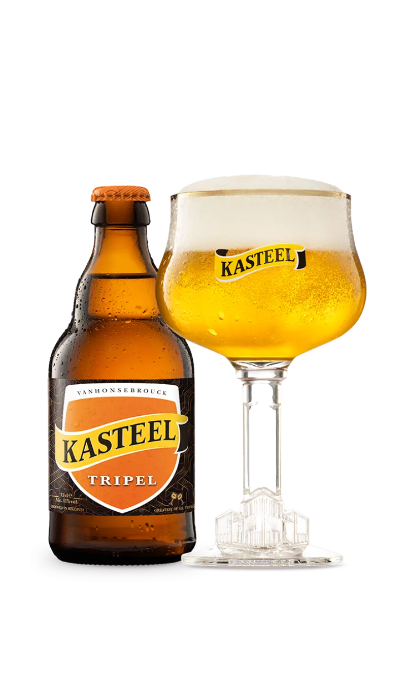 Kasteel Tripel La Kasteel Tripel est une bière de couleur miel, refermentée en bouteille. Au nez, elle séduit par des arômes de banane et de clou de girofle. Les houblons aromatiques sélectionnés avec soin donnent à cette bière une douce amertume complétée par des notes fraîches et fruitées. Une sensation de chaleur en bouche et une finale légèrement épicée dans laquelle l’alcool ressort fortement viennent compléter ce profil aromatique.