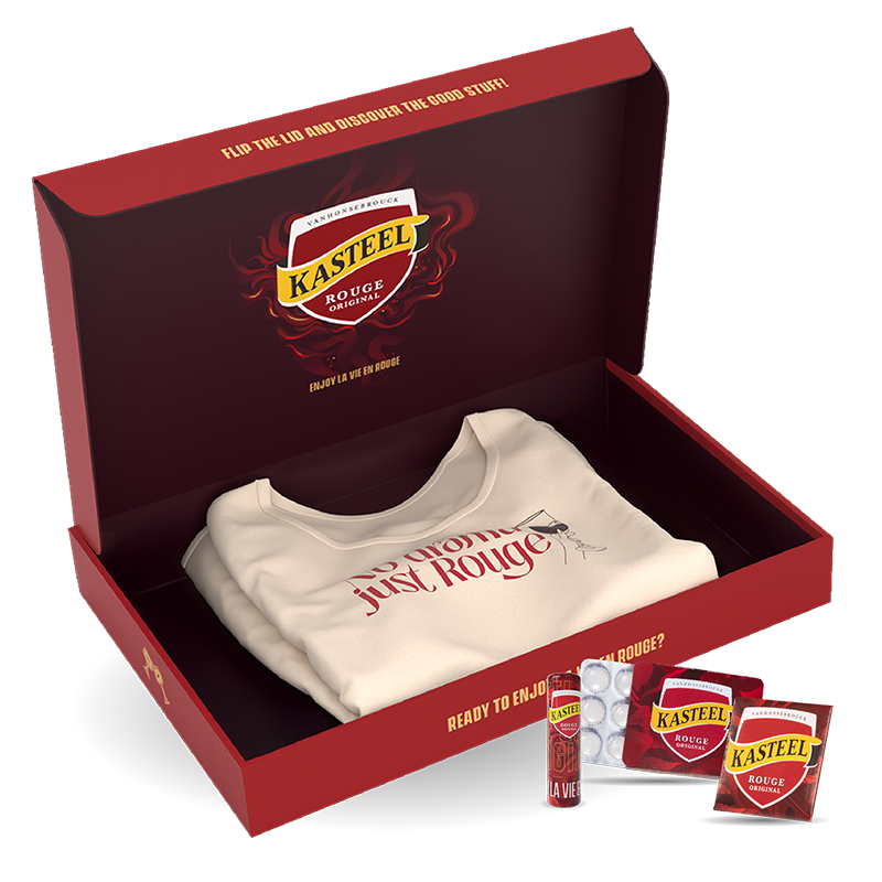 Le tout emballé dans un coffret cadeau Kasteel Rouge exclusif.