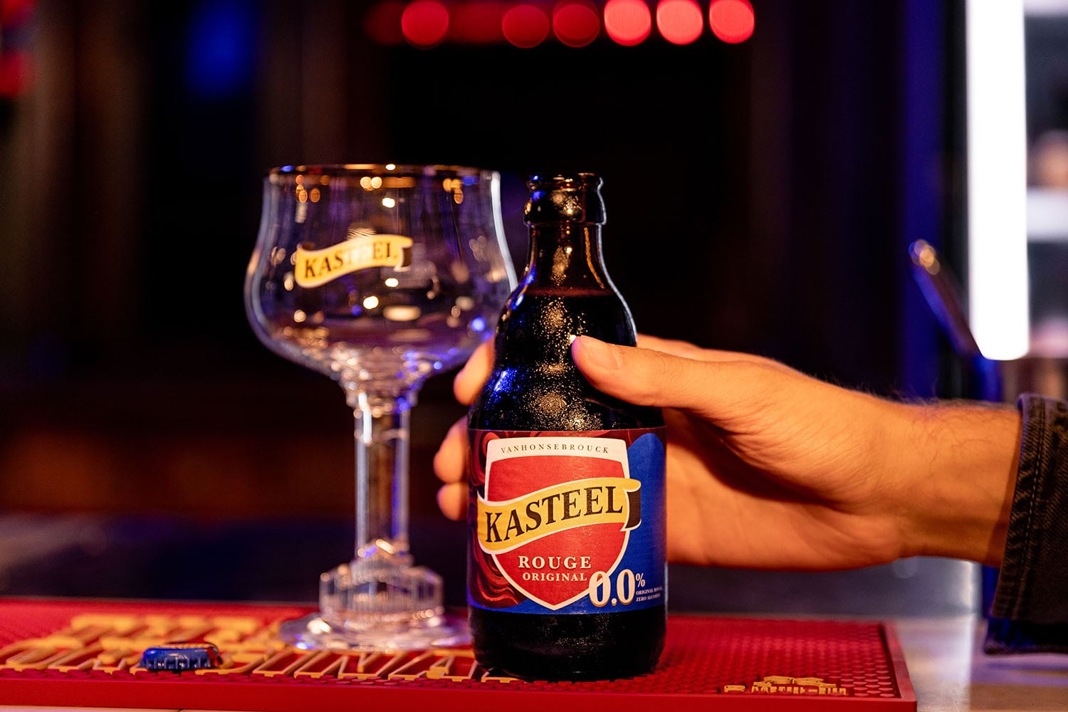 Geniet van de vertrouwde smaak van Kasteel Rouge in een alcoholvrij jasje.