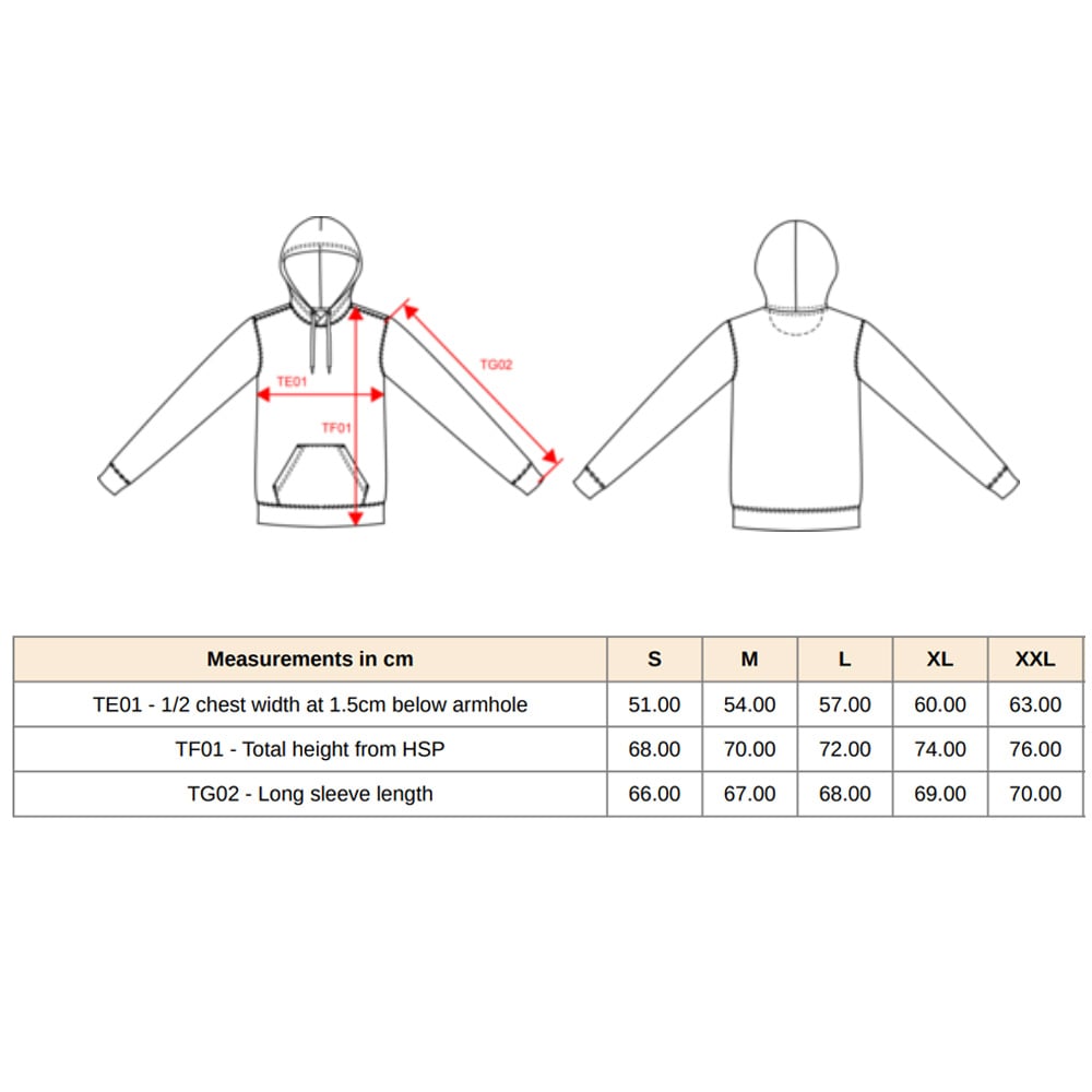 (i) Twijfel je tussen twee maten? Kies dan de kleinere maat voor een meer aansluitende look, of de grotere maat voor een lossere, relaxed fit.