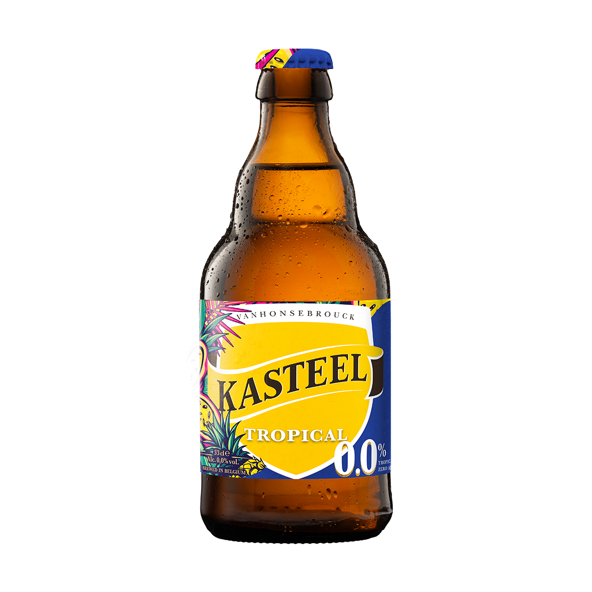 Tropical vibes, zero alcohol: ontdek Kasteel Tropical 0.0, een alcoholvrije bierervaring boordevol tropische vruchten.